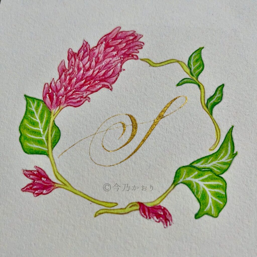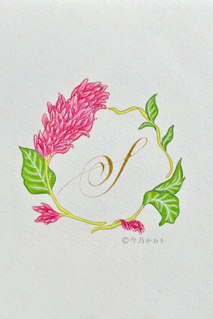 カリグラフィー×花アートシリーズvol.3である今回の作品は「Sとウモウケイトウ」。