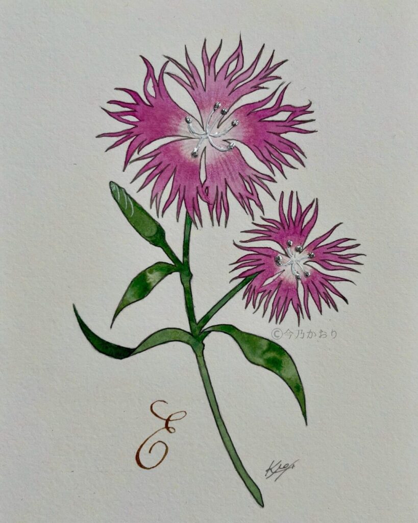 - ナデシコは、花びらの縁の繊細さが出るように、淡い色味で細い線が出る画材を選びました。