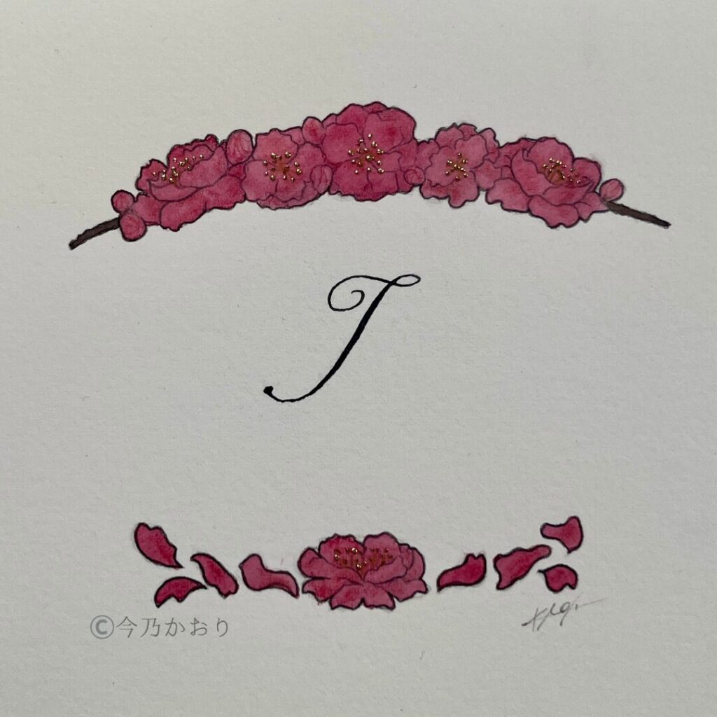 一つの文字と一つの花。どの組み合わせもエネルギーを厳選して描いています。