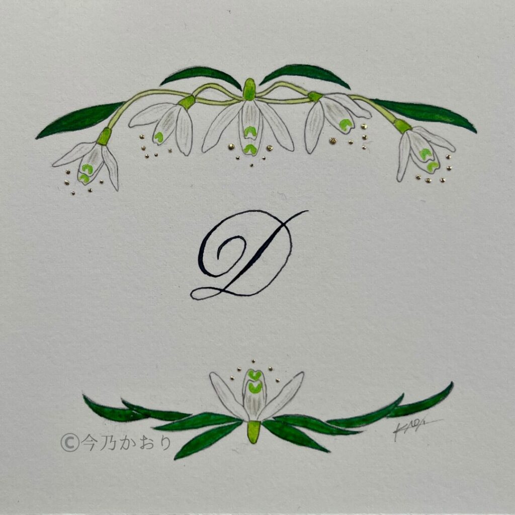 Dの曲線が描く“内側への動き”と、スノードロップのうつむく姿。